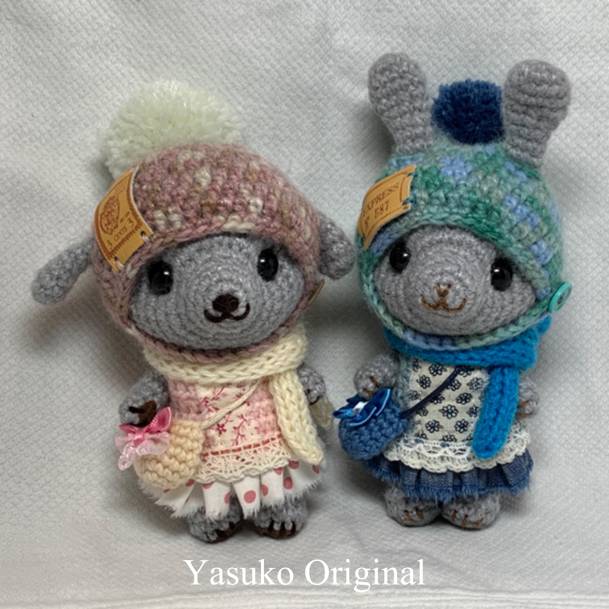 グレーのイヌグルミちゃんとウサグルミちゃん